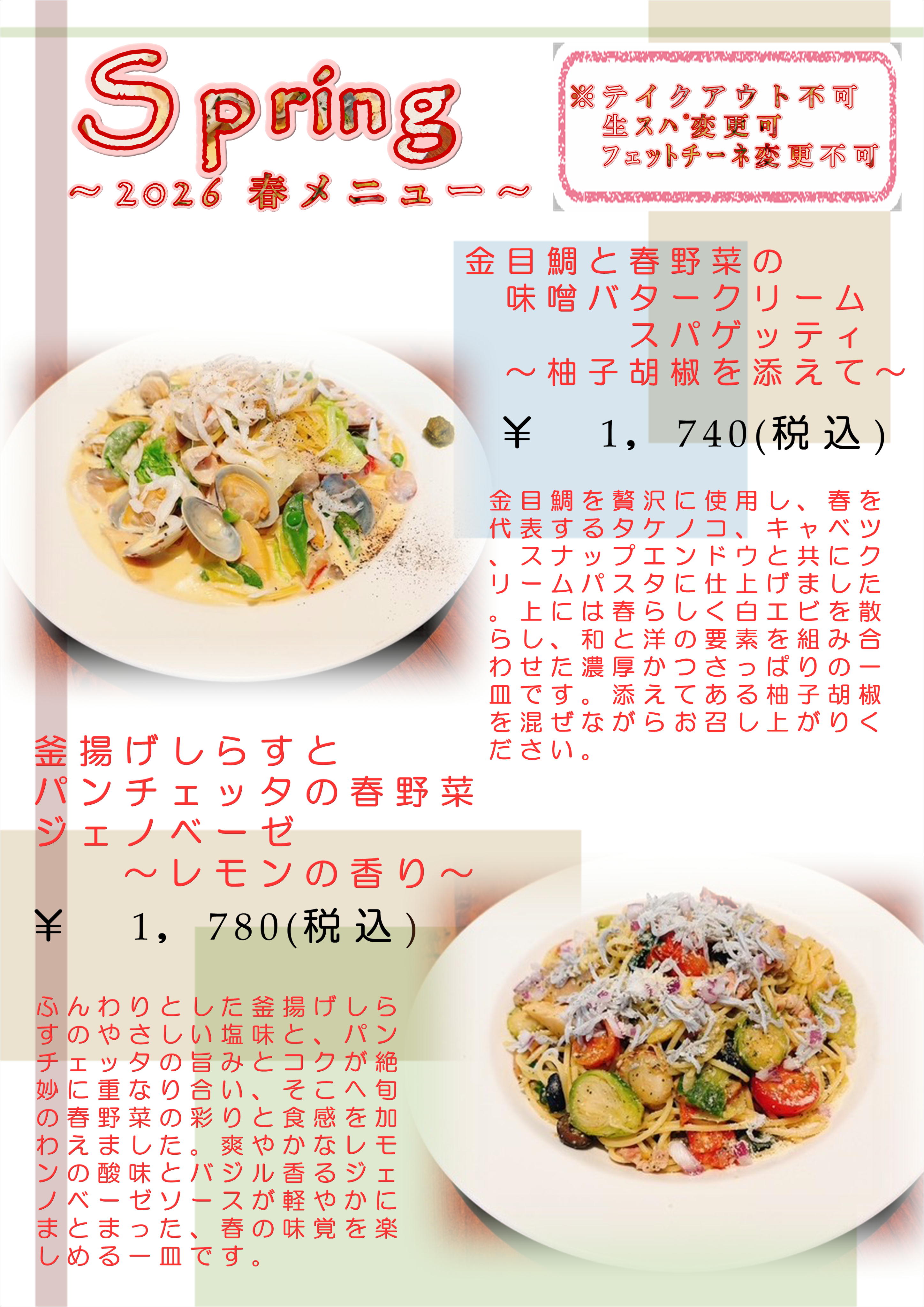 研究学園店 春メニュー始まりました。 つくば研究学園店2026-03-05 日頃より当店をご利用いただきましてありがとうございます。 つくば研究学園店春メニューのご案内です。 お客様のご来店心よりお待ちしております。